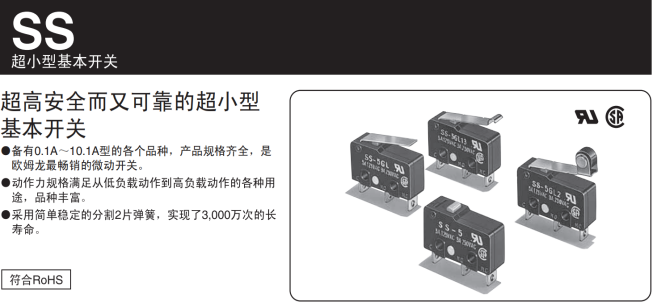 在體外診斷儀器的研發(fā)生產(chǎn)中,必定離不開一種重要組成零件,那就是開關(guān)。開關(guān)可在需頻繁換接電路的設(shè)備中進行自動控制及安全保護,廣泛應(yīng)用在各式儀器儀表設(shè)備中,開關(guān)雖小,起的作用卻是不可替代的。像歐姆龍的SS超小型基本開關(guān)系列,不僅規(guī)格齊全,從0.1A~10.1A均有配備,而且機械壽命長,最高可達3000萬次,深受診斷儀器生產(chǎn)廠商的喜愛。廣州鼎悅電子科技有限公司專業(yè)代理歐姆龍微動開關(guān)SS-5GL,傳感器等;歡迎電話咨詢廣州鼎悅電子科技有限公司;相信我們可以帶給您不一樣的選擇;如圖: