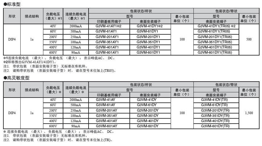 G3VM-41AY1/41DY1 MOS FET歐姆龍繼電器