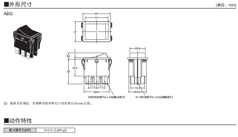 A8G系列船型歐姆龍開關