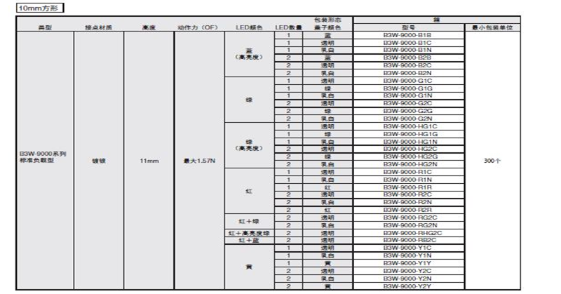 B3W-9000系列 照光式 LED小型帶燈輕觸開關