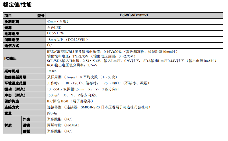 B5WC系列 顏色傳感器